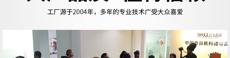 廣州旭眾食品機(jī)械有限公司是一家集科研開發(fā),生產(chǎn)設(shè)計(jì),營(yíng)銷服務(wù)為一體的現(xiàn)代化生產(chǎn)企業(yè)?,F(xiàn)代化生產(chǎn)車間,精湛制造技術(shù),所產(chǎn)機(jī)械歷經(jīng)市場(chǎng)重重考驗(yàn),不斷贏得海內(nèi)外客戶的贊譽(yù)。