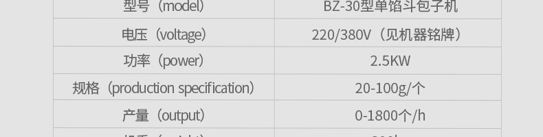 BZ-30型單餡斗包子機,可生產(chǎn)豆沙包、南瓜餅、肉包、小籠包、菜包、圓饅頭、奶黃包、叉燒包、湯包、水晶包等幾十種包餡制品。適用于個體戶、速凍食品廠、學校等各種工作場所??蓾M足不同客戶群體。免費提供工藝技術。