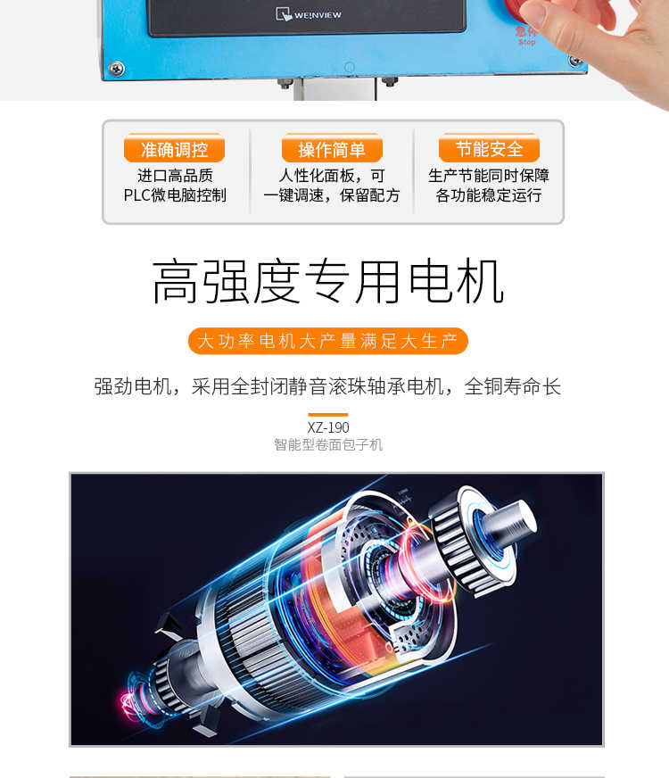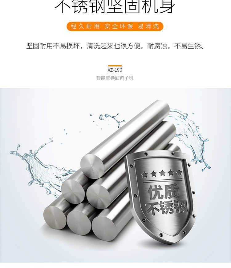 XZ-190智能型卷面式包子機(jī),科技和工藝出乎想象不傷面筋,不斷面筋,薄厚調(diào)節(jié)自如可直接調(diào)節(jié)面皮的薄厚,所出產(chǎn)品外形大小統(tǒng)一,遠(yuǎn)比手工制作美觀!