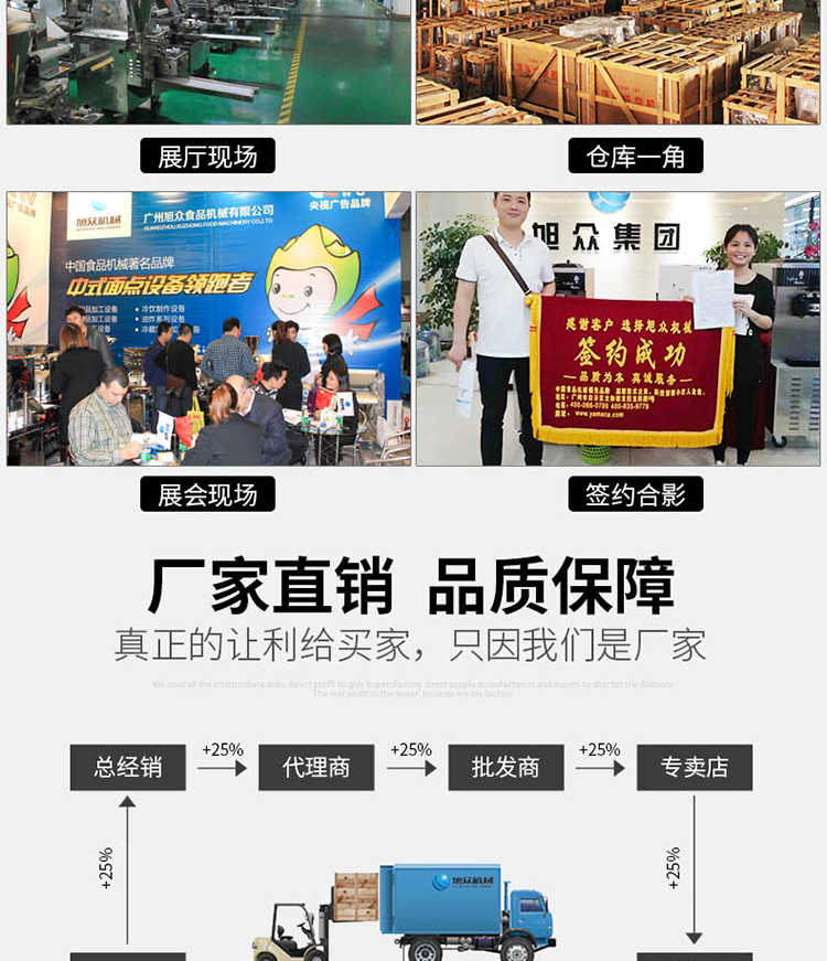 廣州旭眾食品機(jī)械有限公司是一家集科研開(kāi)發(fā),生產(chǎn)設(shè)計(jì),營(yíng)銷服務(wù)為一體的現(xiàn)代化生產(chǎn)企業(yè)?,F(xiàn)代化生產(chǎn)車間,精湛制造技術(shù),所產(chǎn)機(jī)械歷經(jīng)市場(chǎng)重重考驗(yàn),不斷贏得海內(nèi)外客戶的贊譽(yù)。
