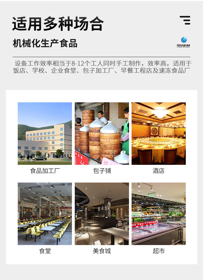 XZ-950型多功能包子機,多功能包子機,出面快速、不傷面筋。無需使用手壓面/推面,帶有自動恒溫制冷系統(tǒng),占地空間小,放料輕松。
