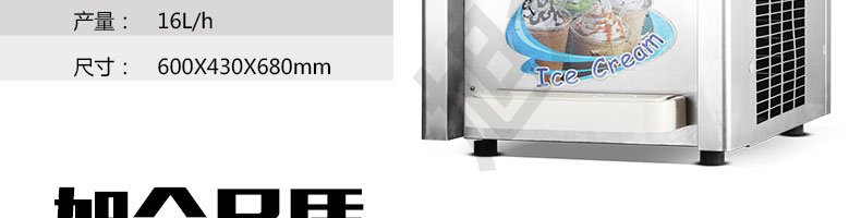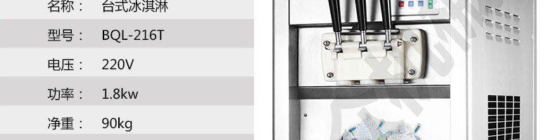 BQL-216T臺(tái)式冰淇淋機(jī),●選用國際名牌成熟制冷配套件和高效壓縮機(jī),融合旭眾精湛工藝輔以嚴(yán)格的質(zhì)量控制流程,使產(chǎn)品整體性能及品質(zhì)得以全面提升?!癫捎萌珨?shù)字電腦控制系統(tǒng),選用名牌優(yōu)質(zhì)電器元件,先進(jìn)的生產(chǎn)工藝,故障診斷,軟硬任意調(diào)制,自動(dòng)修復(fù)功能,安全精確,可靠性更高?!駥I(yè)成熟制冷系統(tǒng)設(shè)計(jì),選用世界名牌大功率專用壓縮機(jī),大大縮短冰淇淋成型時(shí)間,相同時(shí)間內(nèi)冰淇淋產(chǎn)量大幅度增加,使您生意火爆時(shí)依然得心應(yīng)手,為您創(chuàng)造財(cái)富?!癜踩椒€(wěn)的機(jī)械攪拌系統(tǒng),噪音更低、振動(dòng)更小,使整機(jī)運(yùn)行性能達(dá)到國際先進(jìn)水平?!翊_保進(jìn)料溫度在0°C~35°C;環(huán)境溫度5°C~40°C勻可正常使用。