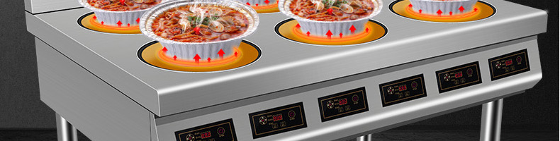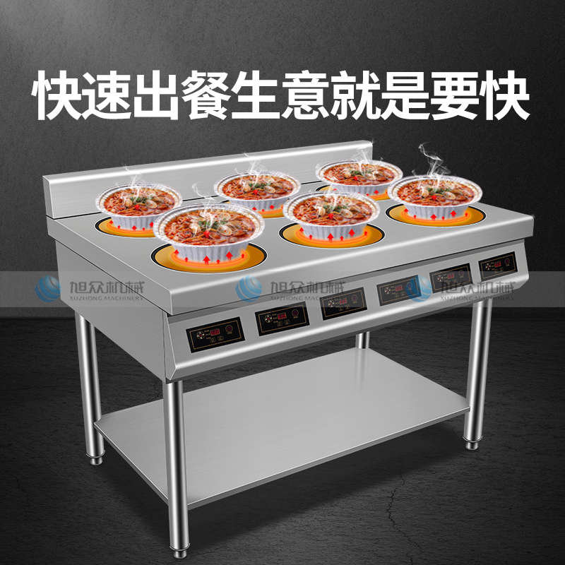 XZ-LBZL210圓頭六頭電陶爐,快餐外賣搶著買,一爐百烹快速出餐。煎炒燜煮煲等各樣花式,樣樣行,單頭3500W大火力實(shí)現(xiàn)快速出餐不等待做菜重要的就是火候,火力不足一切都是白搭。