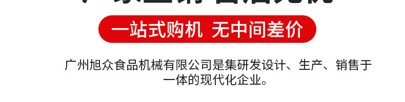 廣州旭眾食品機械有限公司是一家集科研開發(fā),生產(chǎn)設(shè)計,營銷服務為一體的現(xiàn)代化生產(chǎn)企業(yè)?,F(xiàn)代化生產(chǎn)車間,精湛制造技術(shù),所產(chǎn)機械歷經(jīng)市場重重考驗,不斷贏得海內(nèi)外客戶的贊譽。