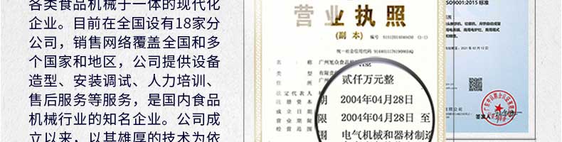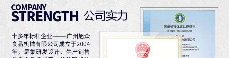 廣州旭眾食品機(jī)械有限公司是一家集科研開發(fā),生產(chǎn)設(shè)計(jì),營銷服務(wù)為一體的現(xiàn)代化生產(chǎn)企業(yè)?,F(xiàn)代化生產(chǎn)車間,精湛制造技術(shù),所產(chǎn)機(jī)械歷經(jīng)市場(chǎng)重重考驗(yàn),不斷贏得海內(nèi)外客戶的贊譽(yù)。