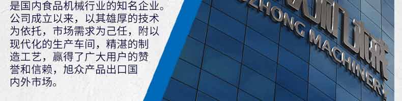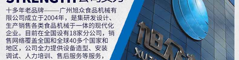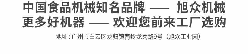 廣州旭眾食品機械有限公司是一家集科研開發(fā),生產(chǎn)設(shè)計,營銷服務(wù)為一體的現(xiàn)代化生產(chǎn)企業(yè)。現(xiàn)代化生產(chǎn)車間,精湛制造技術(shù),所產(chǎn)機械歷經(jīng)市場重重考驗,不斷贏得海內(nèi)外客戶的贊譽。