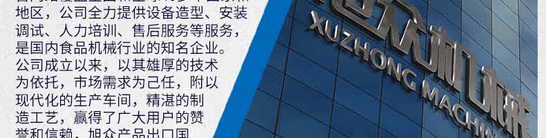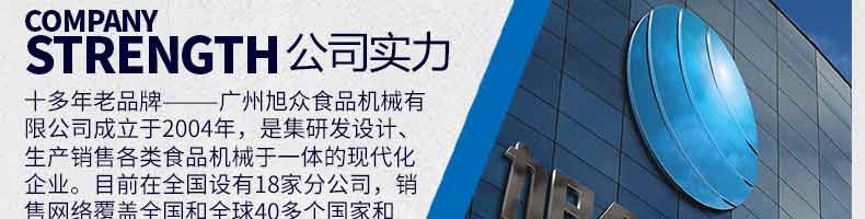 廣州旭眾食品機(jī)械有限公司是一家集科研開發(fā),生產(chǎn)設(shè)計(jì),營銷服務(wù)為一體的現(xiàn)代化生產(chǎn)企業(yè)?,F(xiàn)代化生產(chǎn)車間,精湛制造技術(shù),所產(chǎn)機(jī)械歷經(jīng)市場(chǎng)重重考驗(yàn),不斷贏得海內(nèi)外客戶的贊譽(yù)。