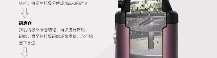 DCLQ38-廚房垃圾處理器,該機(jī)擁有獨(dú)特的粉碎功能,使所有垃圾研磨吸毒真正低于3毫米,用戶不用為管道堵塞而煩惱,粉碎后粗、細(xì)兩種垃圾通過(guò)濾孔自動(dòng)分離,成漿狀的細(xì)垃圾隨水流流入管道,粗的垃圾會(huì)稍停留在研磨倉(cāng)繼續(xù)粉碎,形成粉末狀后,再隨水流流入管道,客戶可以放心使用。