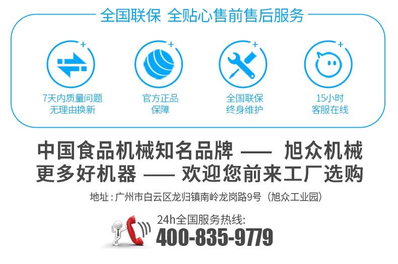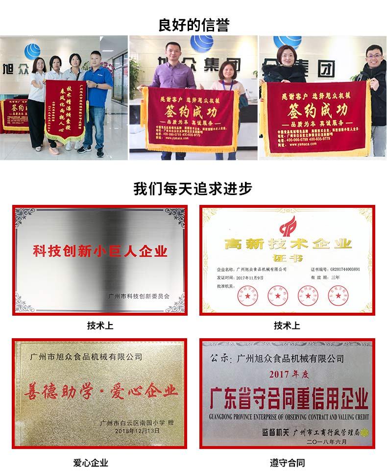 廣州旭眾食品機(jī)械有限公司是一家集科研開發(fā),生產(chǎn)設(shè)計,營銷服務(wù)為一體的現(xiàn)代化生產(chǎn)企業(yè)?,F(xiàn)代化生產(chǎn)車間,精湛制造技術(shù),所產(chǎn)機(jī)械歷經(jīng)市場重重考驗,不斷贏得海內(nèi)外客戶的贊譽(yù)。