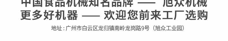 廣州旭眾食品機械有限公司是一家集科研開發(fā),生產(chǎn)設(shè)計,營銷服務(wù)為一體的現(xiàn)代化生產(chǎn)企業(yè)?,F(xiàn)代化生產(chǎn)車間,精湛制造技術(shù),所產(chǎn)機械歷經(jīng)市場重重考驗,不斷贏得海內(nèi)外客戶的贊譽。