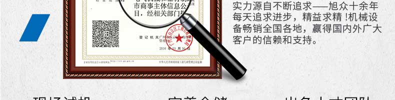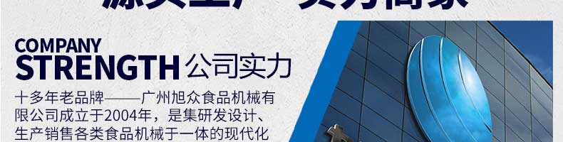 廣州旭眾食品機(jī)械有限公司是一家集科研開(kāi)發(fā),生產(chǎn)設(shè)計(jì),營(yíng)銷(xiāo)服務(wù)為一體的現(xiàn)代化生產(chǎn)企業(yè)?,F(xiàn)代化生產(chǎn)車(chē)間,精湛制造技術(shù),所產(chǎn)機(jī)械歷經(jīng)市場(chǎng)重重考驗(yàn),不斷贏得海內(nèi)外客戶(hù)的贊譽(yù)。