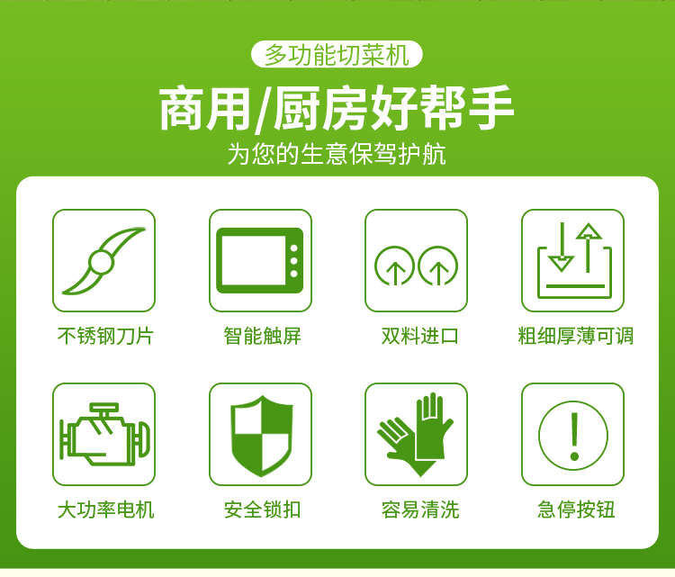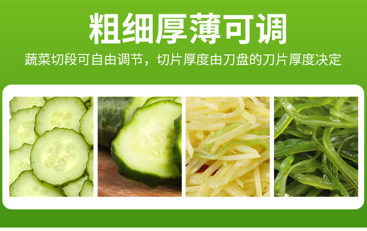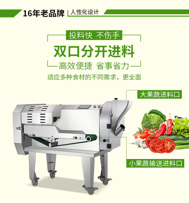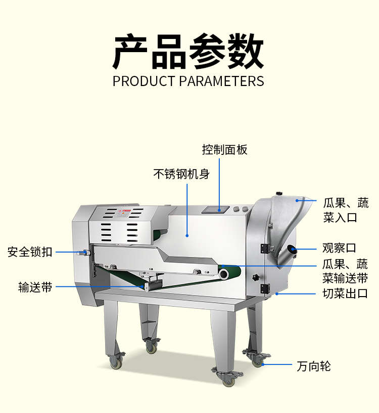 XZ-690A型多功能切菜機(jī),工作效率高,幫你省人工費(fèi)。1小時(shí)可切600kg-1600kg/h,1臺機(jī)器等于多名廚師同時(shí)為您工作。一機(jī)多用,可切瓜果、蔬菜、藥材,刀片可進(jìn)行更換,設(shè)計(jì)周到,結(jié)構(gòu)合理,簡單輕松應(yīng)對。