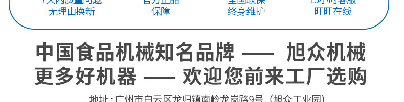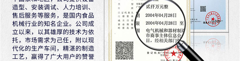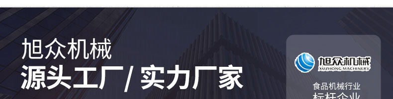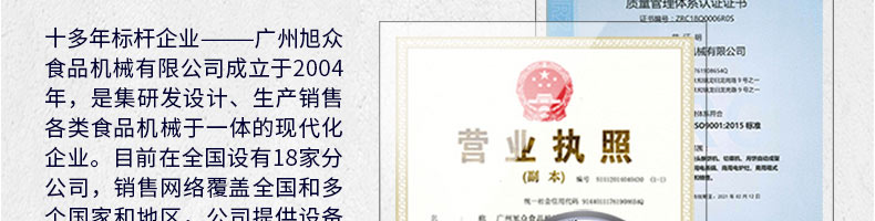 廣州旭眾食品機(jī)械有限公司是一家集科研開發(fā),生產(chǎn)設(shè)計(jì),營(yíng)銷服務(wù)為一體的現(xiàn)代化生產(chǎn)企業(yè)?,F(xiàn)代化生產(chǎn)車間,精湛制造技術(shù),所產(chǎn)機(jī)械歷經(jīng)市場(chǎng)重重考驗(yàn),不斷贏得海內(nèi)外客戶的贊譽(yù)。