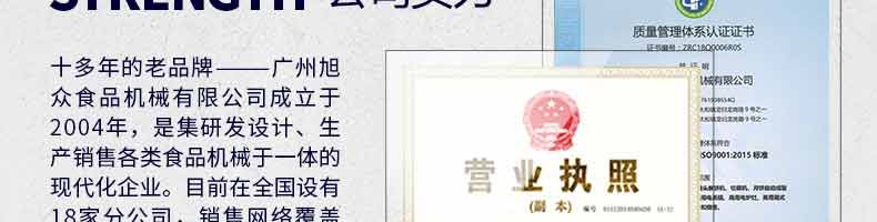 廣州旭眾食品機械有限公司是一家集科研開發(fā),生產(chǎn)設計,營銷服務為一體的現(xiàn)代化生產(chǎn)企業(yè)。現(xiàn)代化生產(chǎn)車間,精湛制造技術,所產(chǎn)機械歷經(jīng)市場重重考驗,不斷贏得海內(nèi)外客戶的贊譽。