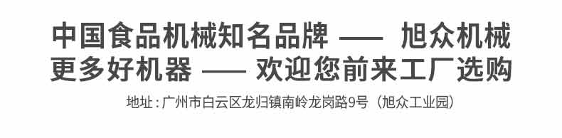 廣州旭眾食品機械有限公司是一家集科研開發(fā),生產(chǎn)設(shè)計,營銷服務(wù)為一體的現(xiàn)代化生產(chǎn)企業(yè)?,F(xiàn)代化生產(chǎn)車間,精湛制造技術(shù),所產(chǎn)機械歷經(jīng)市場重重考驗,不斷贏得海內(nèi)外客戶的贊譽。