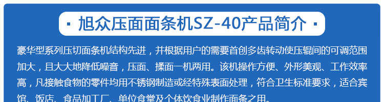 SZ-50、SZ-70壓面面條機(jī)系列,本機(jī)壓面、揉面一機(jī)兩用,用于制作面條、云吞皮、糕點(diǎn)、面點(diǎn)等食品,生產(chǎn)的產(chǎn)品韌性大、耐煮、不易斷,適合于賓館、飯店、食堂、面包廠及各類面點(diǎn)加工單位或個體商戶使用。