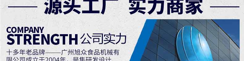 廣州旭眾食品機(jī)械有限公司是一家集科研開發(fā),生產(chǎn)設(shè)計(jì),營銷服務(wù)為一體的現(xiàn)代化生產(chǎn)企業(yè)。現(xiàn)代化生產(chǎn)車間,精湛制造技術(shù),所產(chǎn)機(jī)械歷經(jīng)市場(chǎng)重重考驗(yàn),不斷贏得海內(nèi)外客戶的贊譽(yù)。